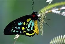 金裳凤蝶是凤蝶科、裳凤蝶属的动物。金裳凤蝶身体呈黑色,头、颈和胸侧有红毛,腹部有黑黄两色相间条纹,雄蝶前翅黑色,具黑天鹅绒光泽,各脉两侧灰白色,后翅金黄色,各室外缘有等腰三角形黑斑1枚,斑内侧有晕,…全部>>