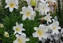 麝香百合:在中国台湾亦称铁炮百合。鳞茎球形或近球形,高2.5-5厘米;鳞片白色。茎高45-90厘米,绿色,基部为淡红色。叶散生,披针形或矩圆状披针形,两面无毛。花单生或2-3朵;花喇叭形,白色,筒外…全部>>