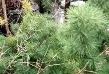 蓬莱松是天门冬科、天门冬属多年生丛生草本植物。宿存,圆柱形肉质根,纵截面为绿色和表面灰色。植株高可达3米。茎呈圆柱形或近四边形,底部木质化,具有灰色或灰褐色。幼嫩的茎在每个节上都被紫绿色鳞片包,…全部>>