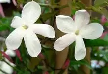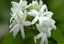 素馨花,木犀科素馨属多年生的攀援灌木植物。攀援灌木,小枝圆柱形,具棱或沟;叶对生,叶轴常具窄翼,小叶片卵形或长卵形;聚伞花序顶生或腋生,花序梗长,苞片线形,花萼无毛,裂片锥状线形,花冠白色,…全部>>