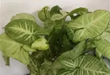 合果芋是天南星科,合果芋属多年生常绿草本植物,合果芋的茎节具气生根,攀附他物生长。叶片呈两型性,箭形或戟形;叶基裂片两侧常着生小型耳状叶片。佛焰苞浅绿或黄色。合果芋一般不易开花。…全部>>