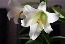麝香百合:在中国台湾亦称铁炮百合。鳞茎球形或近球形,高2.5-5厘米;鳞片白色。茎高45-90厘米,绿色,基部为淡红色。叶散生,披针形或矩圆状披针形,两面无毛。花单生或2-3朵;花喇叭形,白色,筒外…全部>>