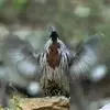 红腹角雉属于鸡形目雉科,雄鸟体羽及两翅主要为深栗红色,满布具黑缘的灰色眼状斑,下体灰斑大而色浅。雌鸟上体灰褐色,下体淡黄色,杂以黑、棕、白斑。全部>>