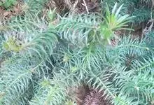 杉木 Hook.)是柏科杉木属高大乔木。株高大;树皮灰褐色裂成长条片,内皮淡红色;大枝平展,小枝对生或轮生,幼枝绿色,光滑无毛,冬芽近球形,具小形叶状芽鳞;叶披针形或窄;雄球花圆锥状,绿色;球果卵圆形,…全部>>