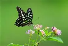 青带凤蝶Graphium sarpedon ,又名青凤蝶,是最普遍的中型凤蝶,飞行速度很快。青带凤蝶的翅膀中央有许多浅蓝色的斑点,很整齐地排列成一条直线。这些斑点由上而下逐渐变大,就像一条青色的带子。全部>>