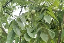 胡桃,是胡桃科胡桃属的落叶乔木植物。树干较别的种类矮,树冠广阔;小枝灰绿色无毛;小叶呈椭圆状卵形至长椭圆形;果序短;果实近于球状,无毛;果核稍具皱曲,顶端具短尖头;隔膜较薄,…全部>>