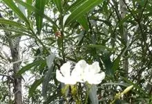 白花夹竹桃是夹竹桃科、夹竹桃属植物夹竹桃的栽培品种。常绿直立大灌木,枝条灰绿色;嫩枝条具稜,被微毛,老时毛脱落。叶3-4枚轮生,下枝为对生,叶面深绿,叶背浅绿色;侧脉纤细平行与中脉成直角;叶柄扁平,…全部>>