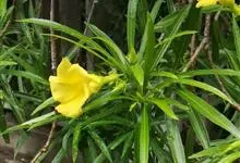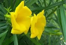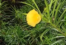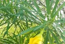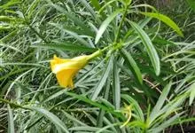 黄花夹竹桃K. Schum.),又名“酒杯花”“柳木子”“黄花状元竹”,是夹竹桃科,黄花夹竹桃属下的常绿乔木植物。高达5m,全株无毛,树皮棕褐色;叶互生,近革质,线形或线状披针形;花大,黄色,具香味,…全部>>
