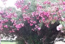 夹竹桃,又名红花夹竹桃、欧洲夹竹桃,是夹竹桃科夹竹桃属的一种常绿直立大灌木,枝条灰绿色,含水液。叶披针形,3叶轮生。聚伞花序顶生,花冠粉红至深红色,花冠漏斗状,有特殊香味。蓇葖果,圆柱形。种子长圆形,…全部>>