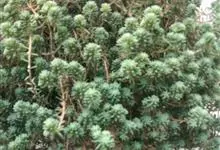 薄雪万年草别名矶小松,景天科景天属多年生草本植物,其细小的蓝绿色棒状叶片环绕生长于茎端,茎匍匐生长接触地面易着生不定根,整片生长郁郁葱葱犹如蓝色地毯,绿化效果极为秀美。原产西班牙,…全部>>
