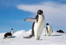 阿德利企鹅在企鹅家族中属中、小型种类,体长72-76厘米,和许多种类企鹅一样,雌鸟和雄鸟同形同色,从外形难以辨认。眼圈为白色,头部呈蓝绿色,嘴为黑色,嘴角有细长羽毛。羽毛由黑、白两色组成,…全部>>