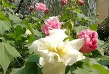 木芙蓉,锦葵科木槿属落叶灌木或小乔木。小枝上有细绒毛;叶片为卵状心形,托叶为披针形,常早落;花单生,花萼为钟形,花冠初为白色或淡红色,后逐渐变为深红色;果实为扁球形,有淡黄色的毛附着。花期8到10月。…全部>>