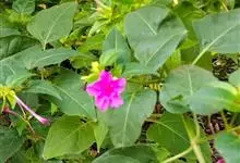 即紫茉莉,英文名:Four-o'clock,Marvel of Peru,为紫茉莉科、紫茉莉属多年生草本植物,一年生栽培。株高50~80cm。根粗壮,茎多分枝而散生。叶对生,卵形或心脏形。花数朵簇生…全部>>