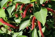 红穗铁苋菜:为大戟科、铁苋菜属植物,灌木,高0.5-3米。嫩枝被灰色短绒毛,毛逐渐脱落,小枝无毛。 花序色泽鲜艳,葇荑花序下垂,如狐狸尾状,雌花近卵形,长约0.8毫米,顶端急尖,具短毛;子房近球形,…全部>>