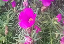 大花马齿苋:一年生草本,高10-30厘米。茎平卧或斜升,紫红色,多分枝,节上丛生毛。叶密集枝端,较下的叶不规则互生,叶片细圆柱形,无毛。花单生或数朵簇生枝端,直径2.5-4厘米,…全部>>