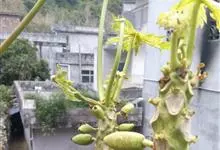 番木瓜,番木瓜科番木瓜属的常绿软木质小乔木,高达10米,具有乳汁;茎不分枝或有时于损伤处分枝;叶大且聚生于茎顶,近似盾形,叶柄中空;花单性或两性,有些品种雄株偶尔生两性花或雌花,…全部>>