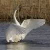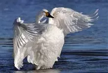 小天鹅为大型水禽,体长110~130厘米,体重4~7千克,雌鸟略小。它与大天鹅在体形上非常相似,同样是长长的脖颈,纯白的羽毛,黑色的脚和蹼,身体也只是稍稍小一些,颈部和嘴比大天鹅略短,但很难分辩。最…全部>>