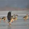 灰雁:体长70-90厘米,翼展147-182厘米,体重2.5-4千克,寿命17年。体大而肥胖。嘴、脚肉色,上体灰褐色,下体污白色,飞行时双翼拍打用力,振翅频率高。脖子较长。腿位于身体的中心支点,…全部>>