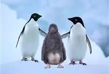 阿德利企鹅在企鹅家族中属中、小型种类,体长72-76厘米,和许多种类企鹅一样,雌鸟和雄鸟同形同色,从外形难以辨认。眼圈为白色,头部呈蓝绿色,嘴为黑色,嘴角有细长羽毛。羽毛由黑、白两色组成,…全部>>