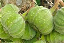 大果榕是桑科榕属的小乔木,株高可达10米;幼枝被柔毛;叶互生,宽卵状心形或近圆形;雄花无梗、匙形、花丝长,雌花生于雌株榕果内,子房白色;榕果簇生于树干基部或老茎短枝上、扁球形或陀螺形,…全部>>