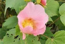 海滨木槿是锦葵科木槿属植物,落叶小乔木,株高3-5米,胸径20厘米,扁球形树冠,枝叶繁盛。厚纸质单叶互生,扁圆形、倒卵形或宽倒卵形,先端钝近平,具短突尖,基部圆形或浅心形,叶缘中上部具细圆齿,…全部>>