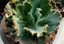 女王花笠,又名扇贝石莲花、女王花舞笠,是景天科拟石莲花属的多肉植物。由美国加利福尼亚州的育种师Dick Wright于1964年培育。特征是呈大波浪状褶皱的红色叶缘和气质高贵的粉紫色调。…全部>>