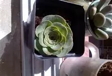 红缘莲花掌属蔷薇目、景天科植物,原产大西洋的加那利群岛。质厚,蓝绿色,被白霜,叶缘红褐色。聚伞花序,花浅黄色,有时带红晕。叶形叶色较美,有一定的观赏价值,多盆栽用于点缀室内;可放置于电视、电脑旁,…全部>>