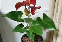 花烛,别名红鹅掌、红掌、安祖花等,为天南星科花烛属的一种多年生草本植物。其茎矮;叶互生,叶片革质,有光泽,阔心形、圆心形,先端钝或渐尖,基部深心形;肉穗花序有细长花序梗,佛焰苞深红色或橘红色,…全部>>