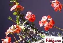虎刺梅:别称铁海棠,是蔓生灌木植物。茎多分枝,长60-100厘米,直径5-10毫米,具纵棱,密生硬而尖的锥状刺,刺长1-1.5厘米,直径0.5-1.0 毫米,常呈3-5列排列于棱脊上,呈旋转。叶互生…全部>>