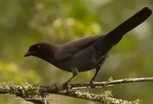 盘尾树鹊,是雀形目鸦科的珍稀鸟类,是一种中等体型的近黑色树鹊。尾甚长而端部展开;通体体羽闪亮深灰色,并具铜绿色光泽;嘴粗厚而呈钩状;眼先蓝色。虹膜蓝色;嘴黑色;脚黑色。单独或成对活动,…全部>>