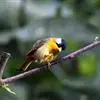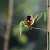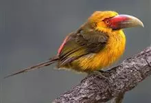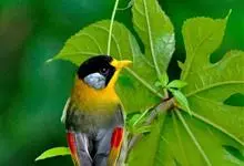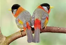 银耳相思鸟小型鸟类,体长14~18厘米。头顶黑色,耳羽银灰色,前额橙黄色;外侧飞羽橙黄色,基部朱红色,极为鲜艳、醒目。尾圆形,尾上、尾下覆羽朱红色,尾暗灰褐色,外侧尾羽橙黄色,其余上体橄榄绿或橄榄黄色。…全部>>