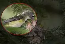白腹凤鹛是绿鹃科、绿凤鹛属的小型鸟类,体长10-12厘米。上体从头到尾黄绿色,有短的羽冠,头顶微具黑色羽轴纹;眼先、眼周,耳羽和下体灰白色,尾下覆羽黄色。虹膜褐色或红褐色,上嘴浅褐色或肉褐色,…全部>>