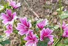 锦葵:二年生或多年生直立草本,高50-90厘米,分枝多,疏被粗毛。叶圆心形或肾形,具5-7圆齿状钝裂片,两面均无毛或仅脉上疏被短糙伏毛。花3-11朵簇生,小苞片3,长圆形疏被柔毛;花紫红色或白色,…全部>>