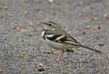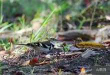 山鹡鸰:是中等体型的林鹡鸰,体长约17厘米,主要羽色为褐色及黑白色。头部和上体橄榄褐色,眉纹白色,从嘴基直达耳羽上方,下体白色,胸部具有两道黑色横斑纹,下面的横斑纹有时不连续。两翼黑褐色,…全部>>