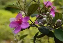 桃金娘 Hassk.),桃金娘科,桃金娘属灌木植物,其高可达2米;幼枝密被柔毛;叶对生,椭圆形或倒卵形;花有长梗,常单生,紫红色,花药圆形;果为浆果,卵状壶形,熟时紫黑色;花期4、5月,…全部>>