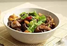 小鸡炖蘑菇是一道东北炖菜。通常是用干蘑菇、鸡肉和粉条一同炖制而成。榛蘑可以衬托出鸡肉的鲜香,粉条滑爽而绵实。小鸡炖蘑菇鸡肉鲜嫩,营养价值也很高。 全部>>