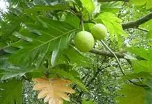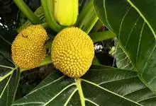 面包树 Fosberg)是桑科波罗蜜属植物。叶大,成熟之叶羽状分裂,表面深绿色,背面浅绿色;穗状花序单生叶腋,雄花序长圆筒形至长椭圆形或棒状;聚花果倒卵圆形或近球形;花期为3~5月,果期为7~10月。…全部>>
