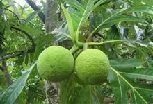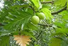 面包树 Fosberg)是桑科波罗蜜属植物。叶大,成熟之叶羽状分裂,表面深绿色,背面浅绿色;穗状花序单生叶腋,雄花序长圆筒形至长椭圆形或棒状;聚花果倒卵圆形或近球形;花期为3~5月,果期为7~10月。…全部>>