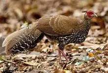 红腹角雉属于鸡形目雉科,雄鸟体羽及两翅主要为深栗红色,满布具黑缘的灰色眼状斑,下体灰斑大而色浅。雌鸟上体灰褐色,下体淡黄色,杂以黑、棕、白斑。全部>>