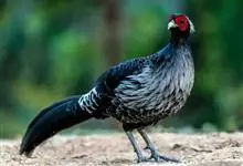 黑鹇是鸡形目雉科目鹇属鸟类,又称鸬雉、黑鸡。体型中等。雄鸟上体黑褐色,背羽具黑紫色金属光泽;头顶具黑羽冠;脸部裸皮呈红色,散生稀疏黑色纤羽;尾长而侧扁,中央两对尾羽红褐色,…全部>>