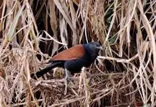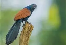 褐翅鸦鹃,是鹃形目鸦鹃科鸦鹃属的鸟类。褐翅鸦鹃的身体为黑色;头颈和胸带蓝紫色金属光泽并具黑亮的羽干纹,下胸至腹部泛金属绿光泽;两翼和肩部为棕栗色,外侧飞羽具暗色羽端,尾羽闪铜绿色光泽;虹膜赤红色,…全部>>