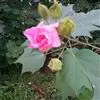 木芙蓉,锦葵科木槿属落叶灌木或小乔木。小枝上有细绒毛;叶片为卵状心形,托叶为披针形,常早落;花单生,花萼为钟形,花冠初为白色或淡红色,后逐渐变为深红色;果实为扁球形,有淡黄色的毛附着。花期8到10月。…全部>>