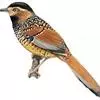 大噪鹛:中型鸟类,体长32-36厘米。额至头顶黑褐色,背栗褐色满杂以白色斑点,斑点前缘或四周还围有黑色。初级覆羽、大覆羽和初级飞羽具白色端斑。尾特长,均具黑色亚端斑和白色端斑。颏、喉棕褐色,…全部>>