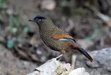 蓝翅噪鹛:噪鹛科、彩翼噪鹛属动物。中型鸟类,体长22-25厘米。上体棕橄榄褐色密被黑色鳞状斑,眼蓝白色,眼上有一长而宽阔的黑色眉纹,从眼先直到颈侧。下体棕褐色被黑色鳞状斑;尾上和尾上覆羽栗色,…全部>>