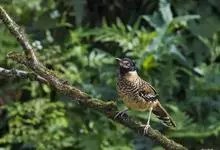 眼纹噪鹛为画眉科噪鹛属的鸟类。中型鸟类,体长30-34厘米。头、颈黑色,脸、眉纹和颏茶黄色,上体棕褐色满杂以白色、黑色和皮黄色斑点,飞羽具白色端斑,尾具白色端斑和黑色亚端斑。喉黑色,胸棕黄色具黑色横斑。…全部>>