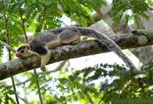 巨松鼠也称为树狗、黑狸、藤狸、黑果狸、黑大松鼠或马来亚大松鼠,为一种大型啮齿类动物。栖息于海拔2000米以下的热带、亚热带季雨林的高树上,是典型的树栖动物。分布于亚洲东南部,…全部>>