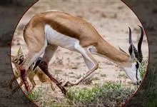阿拉伯沙瞪羚:是偶蹄目、牛科、瞪羚属的食草动物。头尾长97厘米,身高约55-60厘米。雄性体重约为22千克,雌性性体重为18千克。雌雄都有犄角,雄性长达27厘米,雌性15厘米。体型较小。腿细长,…全部>>