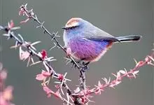 花彩雀莺:体长9-12厘米,是一种毛茸茸偏紫色的雀莺。顶冠棕色,眉纹白。尾长,羽毛松软。前额有一宽阔的眉纹淡黄色,头顶栗色或棕红色,有的具紫蓝色光泽。背灰色,腰和尾上覆羽辉紫蓝色,飞羽灰褐色。…全部>>