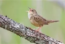 矛斑蝗莺:体长11-14厘米,体重9-13克。上体橄榄褐色密布粗著的黑褐色纵纹,眉纹淡黄色细而不明显,下体乳白色具黑色纵纹,尾羽腹面无白端。虹膜暗褐色;嘴黑褐色,下嘴基黄褐色;脚肉色。…全部>>