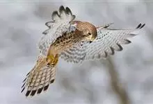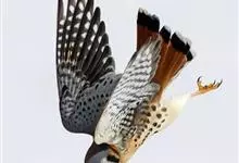 红隼:是隼科、隼属的小型猛禽之一。体重173-335克,体长305-360毫米。翅狭长而尖,尾亦较长,外形和共同爪隼非常相似。雄鸟头蓝灰色,背和翅上覆羽砖红色,具三角形黑斑;腰、尾上覆羽和尾羽蓝灰色,…全部>>